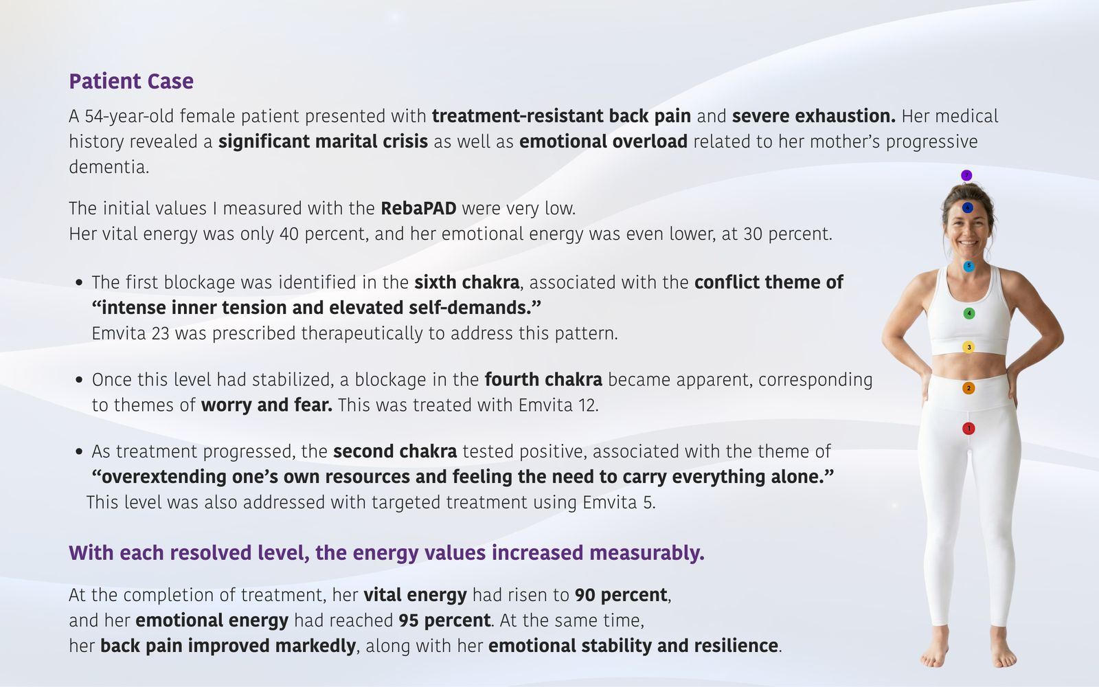 Alongside the energetic improvement, patients often report emotional clarification, a shift in how they perceive their situation, and a growing sense of empowerment.